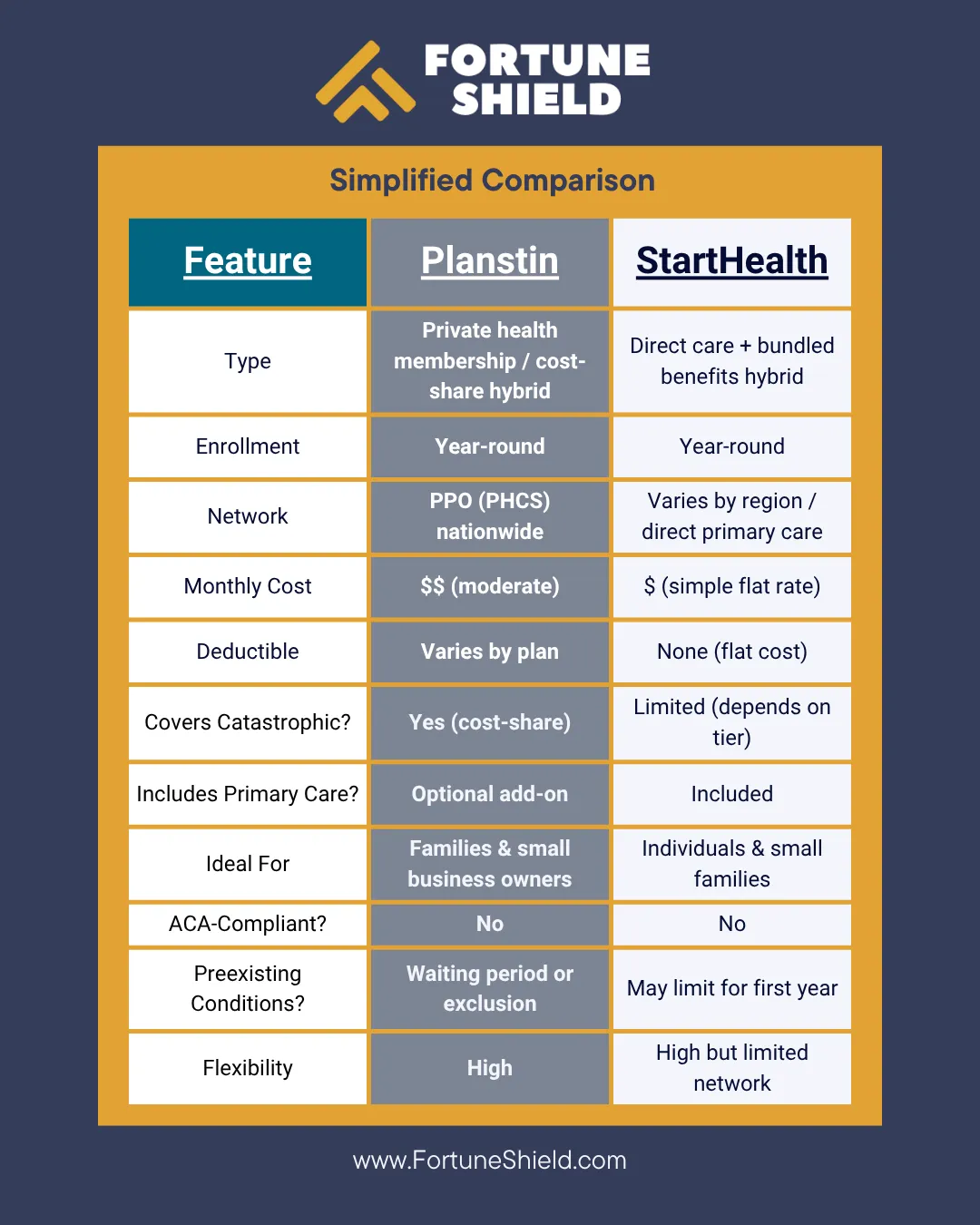 It’s not ACA-compliant insurance — it’s a medical cost-sharing membership with administrative support and optional add-ons (e.g., dental, vision, telehealth).